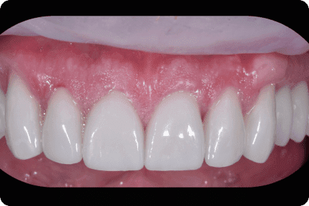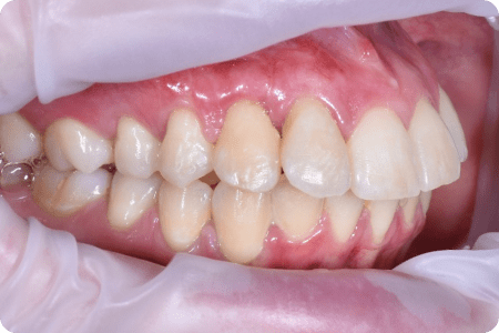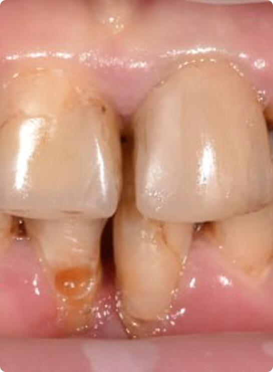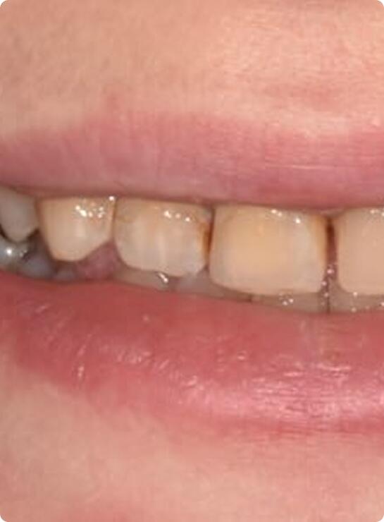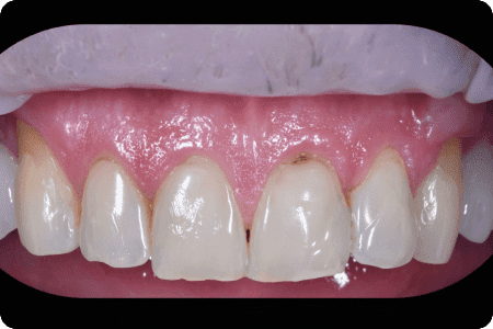 Пациентка обратилась с рецессиями (опущение) десны после проведенного ранее в сторонней клинике ортодонтического лечения. Выполнено закрытие рецессий тоннельной методикой.
