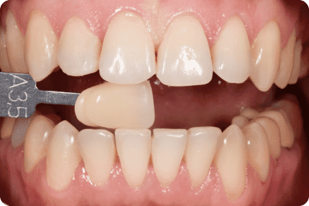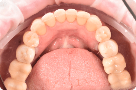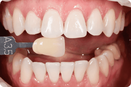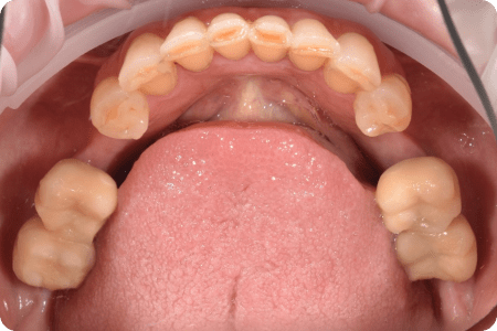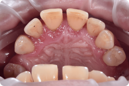 Пациент обратился по поводу замены композитных виниров, которые постоянно деформировались, часто требовалась коррекция, образовывался вторичный кариес и воспалялись десны. Чтобы предотвратить повторное формирование кариеса и систематические коррекции пломб, была выполнена обработка зубов под керамическую реставрацию.
