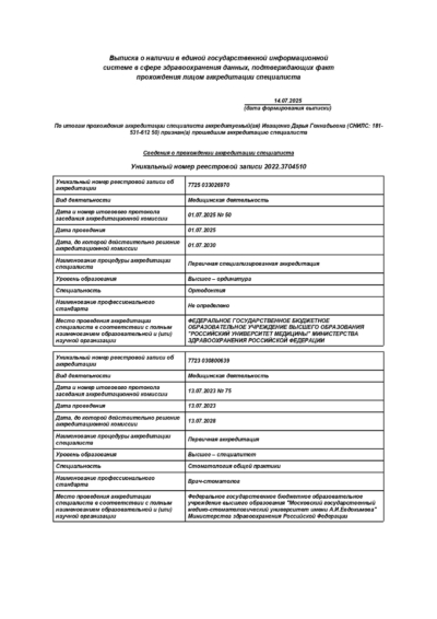 - Консультация, прием первичных пациентов ортодонтического профиля с применением фотопротокола