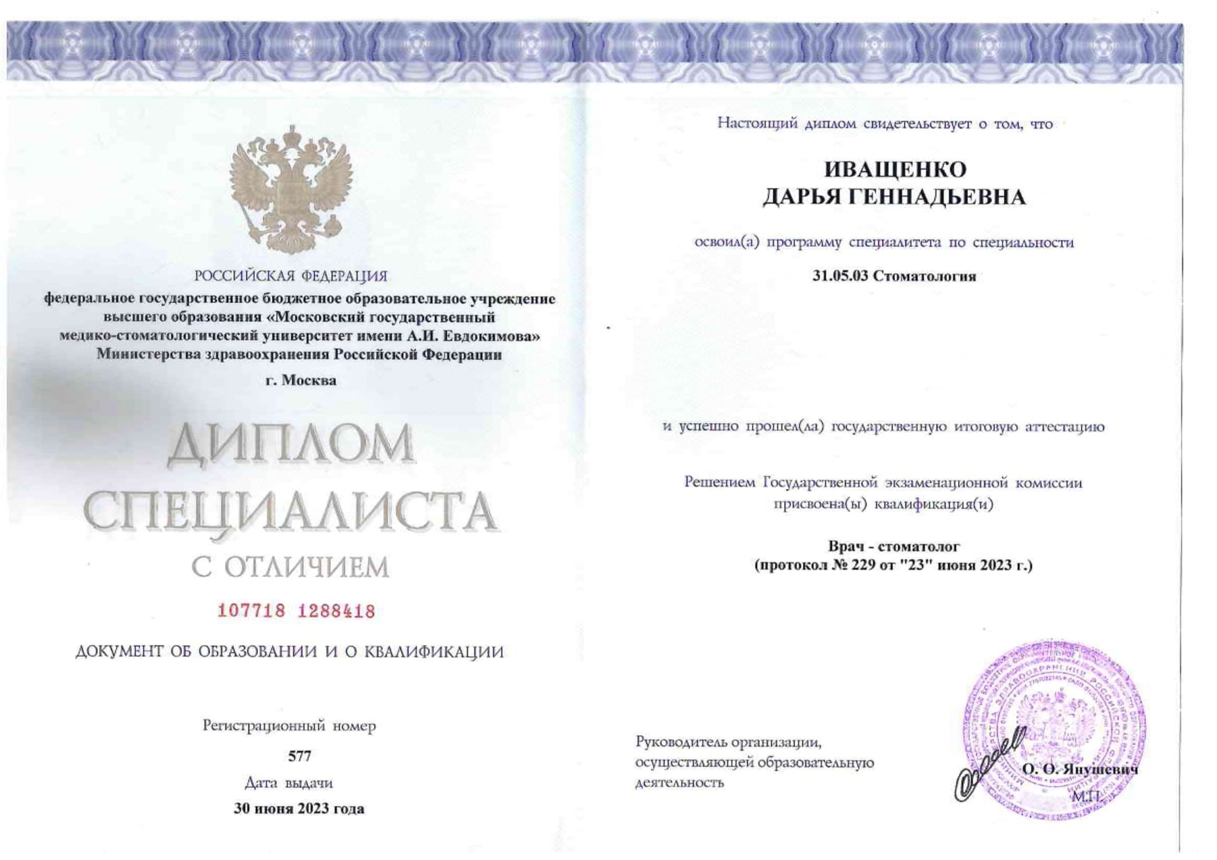 - Московский государственный медико-стоматологический университет имени А. И. Евдокимова / Стоматология, 2023 г.