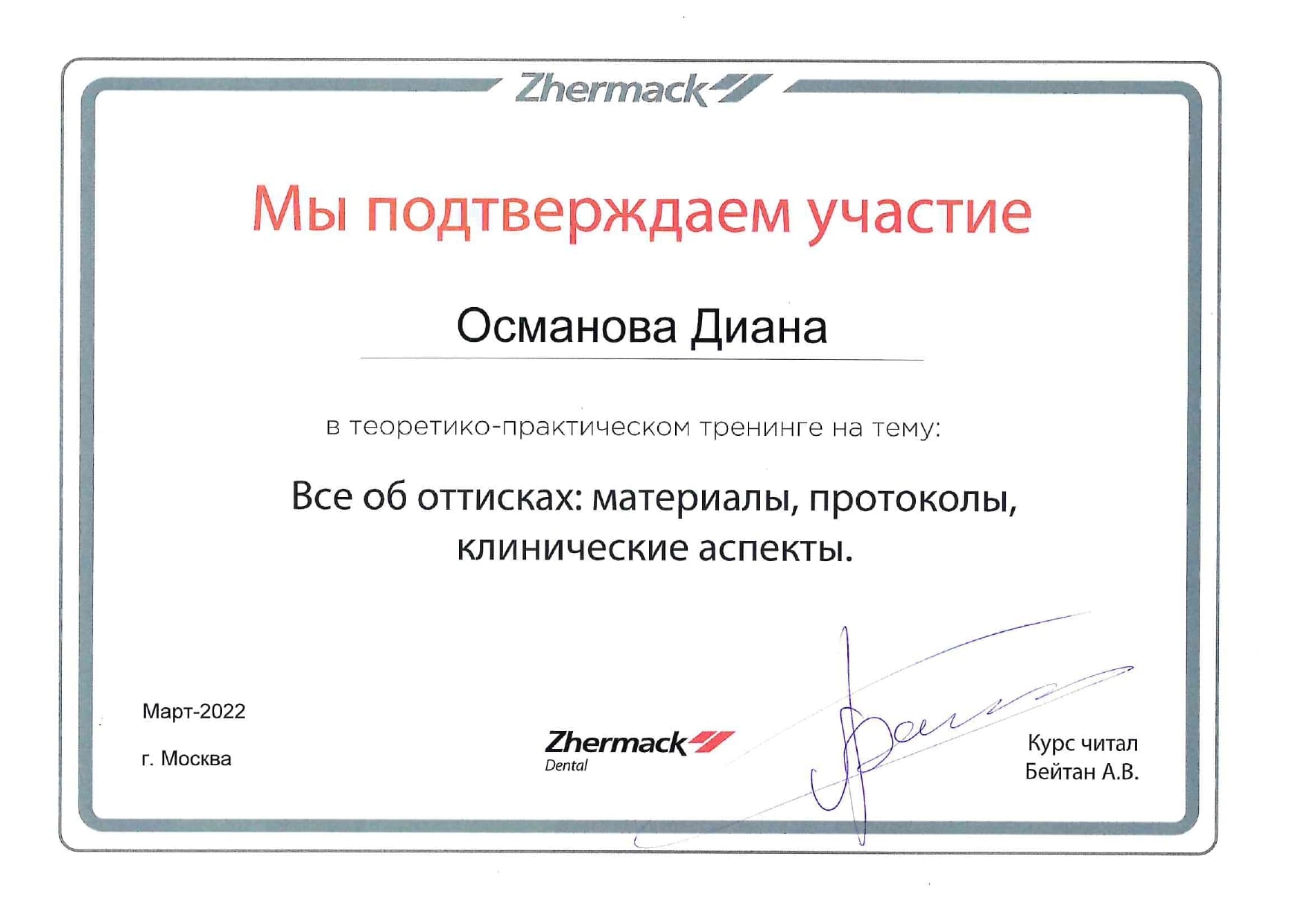- Zhermack Dental. Бейтан А.В. Теоретико-практический тренинг «Всё об оттисках: материалы, протоколы, клинические аспекты», 2022 г.