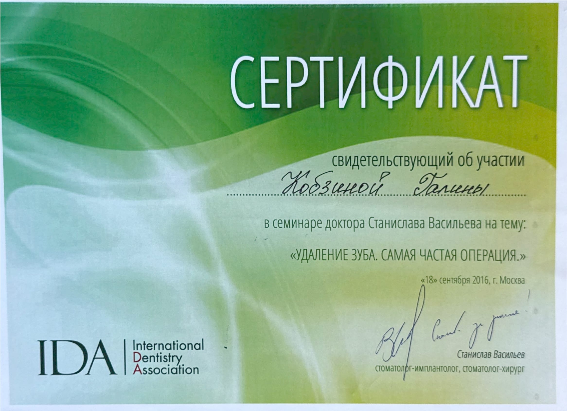 - IDA. Станислав Васильев. Удаление зуба, 2016 г.