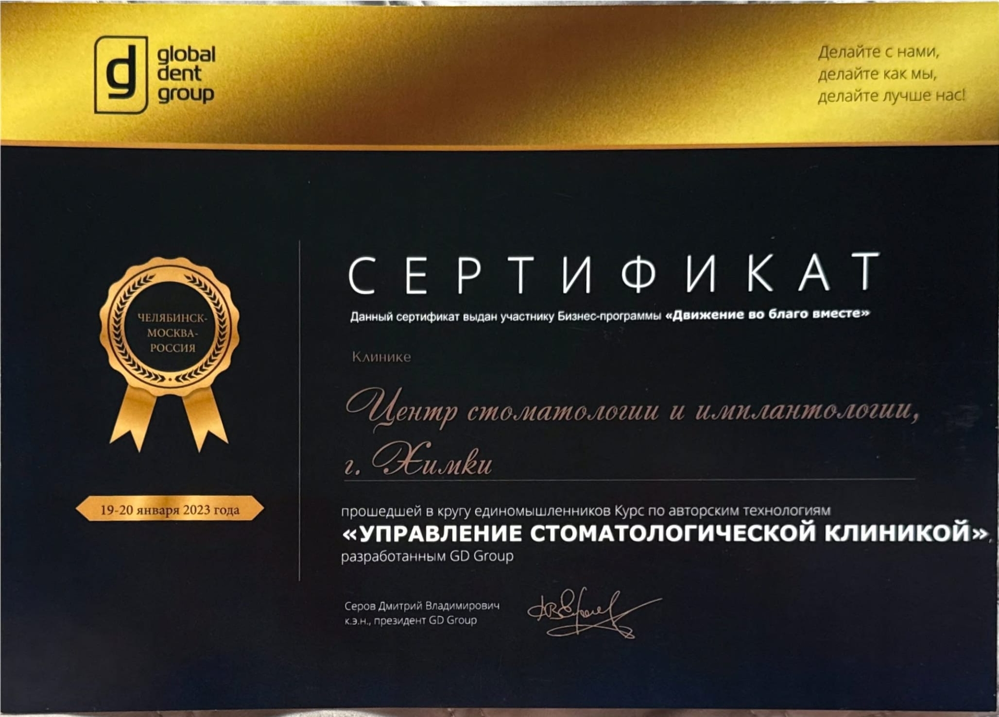 - Global Dent group, г. Челябинск. Управление стоматологической клиникой, 2023 г.