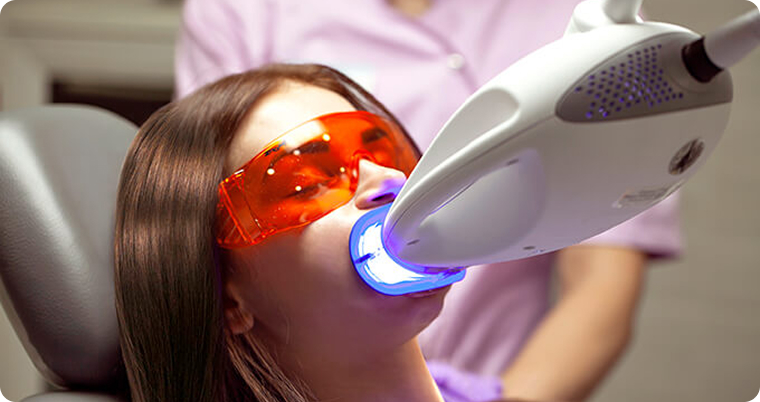 На зубы наносится специальный гель, который активируется холодным светом лампы Zoom.