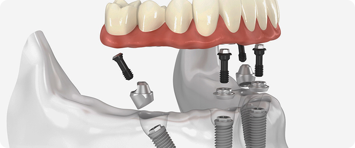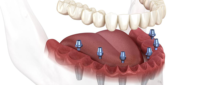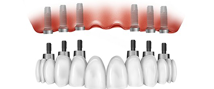 Имплантация всех зубов проводится при полной адентии или тяжёлых формах пародонтоза, когда сохранить оставшиеся зубы невозможно.