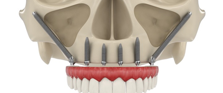 В случаях сильной атрофии используют методику Zygoma — 4 удлинённых скуловых импланта, которые обходят гайморовы пазухи. Такая процедура требует высокой квалификации хирурга.